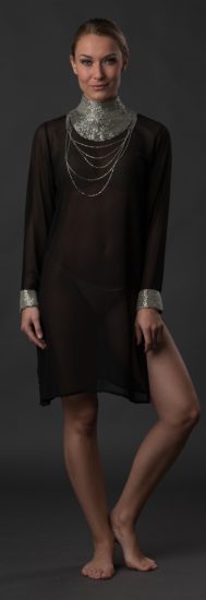 Beautiful turtle neck tunic/ dress in semi sheer black silk