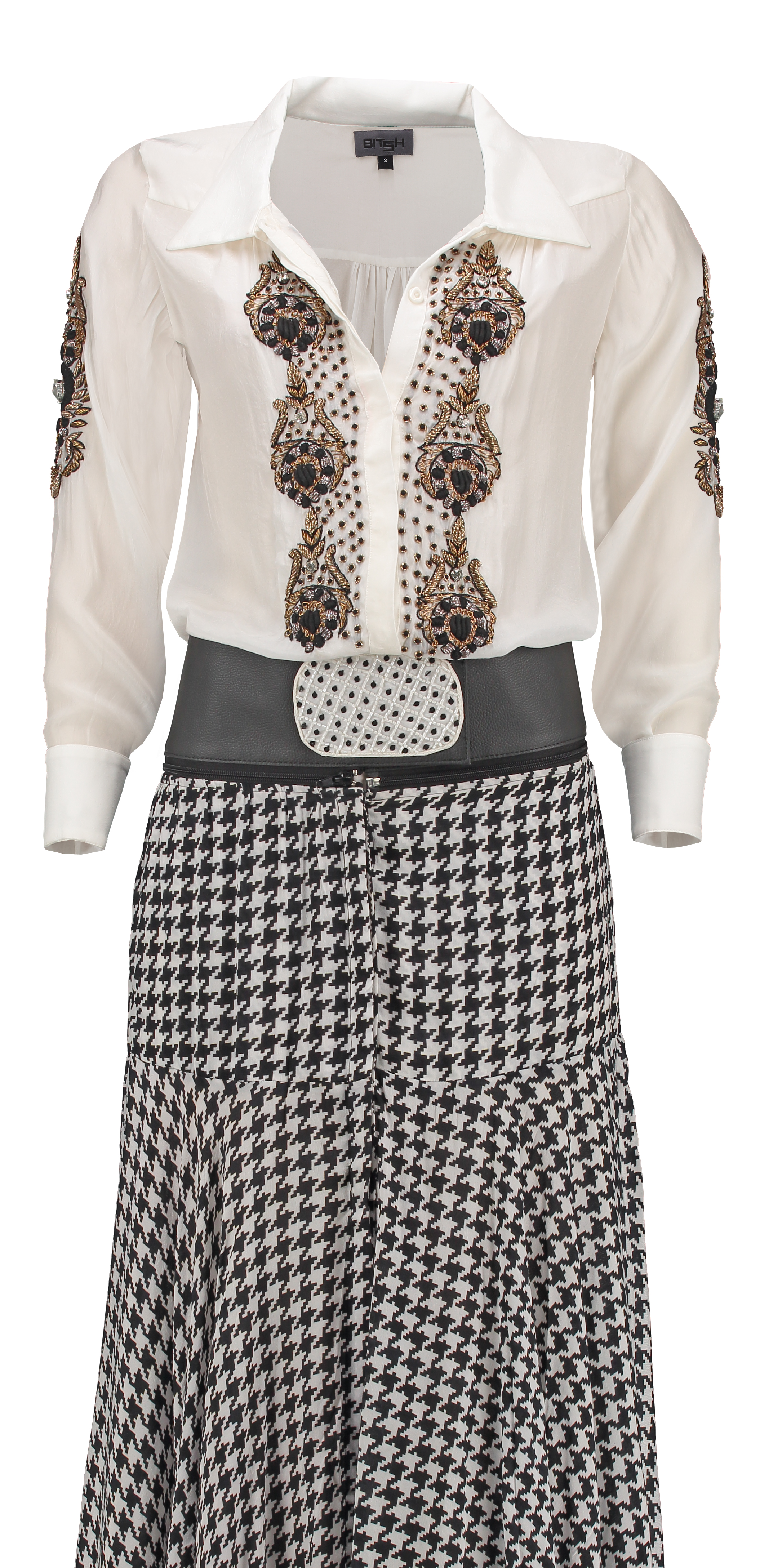 / Set white blouse with black white skirt
